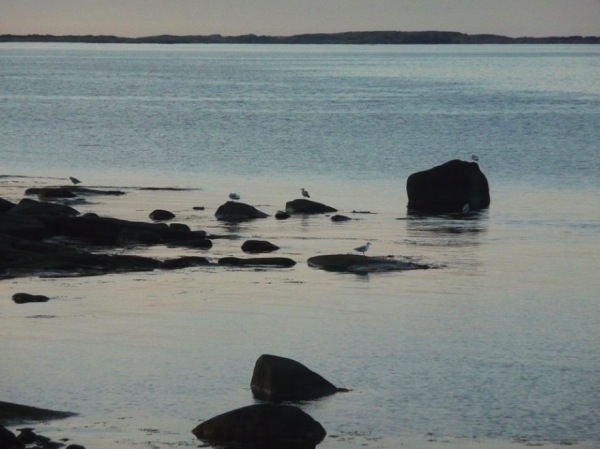Det har varit några mycket vackra dagar. Kanske var morgnarna allra vackrast. Tre morgnar strövade Londi och jag omkring på Subbeberget och tuggade på frostnupna slånbär och halvmogna björnbär. Kaprifolen blommar där på nytt och fyller vindfria platser med sin doft. Vi tittade på måsarna och havet och Londi nosade efter vildkaninerna i snåren.
