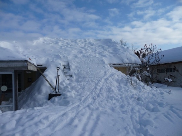 I februari hade vi den djupaste snötid jag någonsin varit med om här. Huset var under snön och gatan var en vit tunnel, där man inte var så helt säker på att den övre delen verkligen var av luft. Grannarna hälsade på varandra från taken med snöskyfflar i näven och trädgårdarna var vita hav som man tog sig över med skidbåtar.
