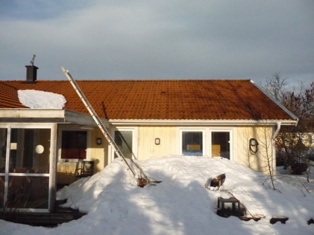 Sedan drygt en vecka åker jag inte längre skidor och våren har med stor glupskhet ätit sig igenom lager efter lager av snö. Gatan är nästan snöfri och ingen är längre på taket. I trädgården kan man pulsa sig fram rätt bra och huset börjar se ut nästan som vanligt. Grillen som jag i februari såg blänka till som ett silvermynt långt nere i snön under mina fötter, går att känna igen som grill.