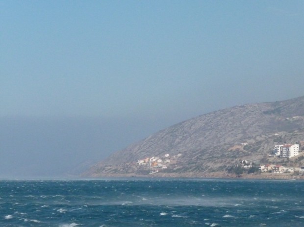 Ja, och varför just den? För att den börjar som en smidig vattenrörelse – för övrigt ännu bättre hörd än sedd: zigzagando… Och för att det blev så vackert när Giacomo Scotti läste den för just Marina Moretti i det här rummet. Under dikten står det: ”Dalla finestra di un ospedale, 13-14 dicembre 2010”. Från ett sjukhusfönster alltså – och detta hav.