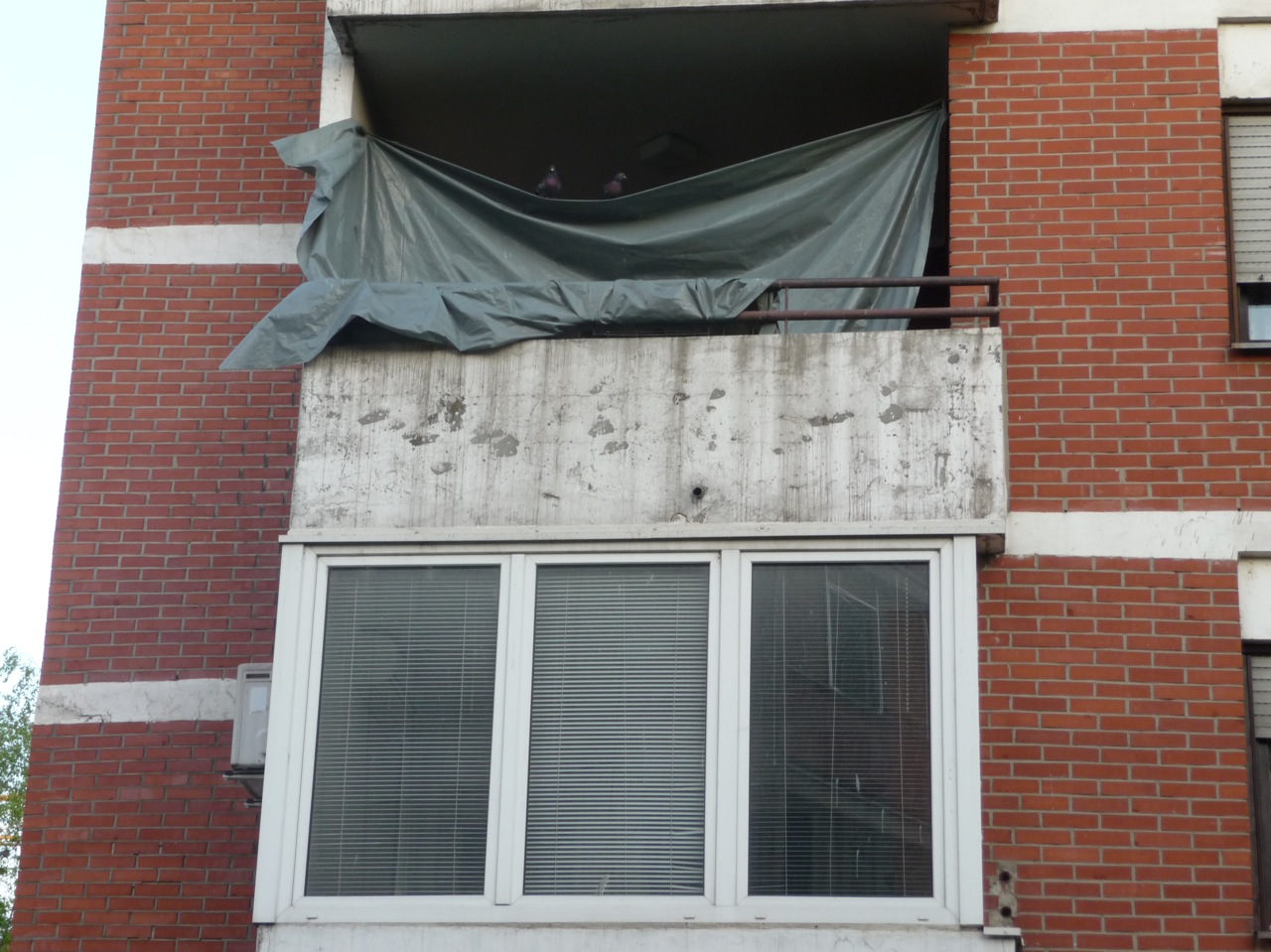 Nu ska jag avslöja varför jag talar så här mycket om duvor. Ovanför mig bor det någon – jag vet inte vem – som har gjort sin balkong till ett hem för duvor, jag är rätt säker på att det rör sig om ”piccioni”. På senare tid har det inträtt en förändring. En presenning har spänts – ja, ”spänts” är väl att ta i – över balkongen, kanske med någon renhållningsavsikt för att grannarna – inte jag – har klagat. Så här ser det ut: